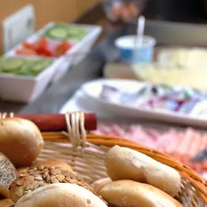 Das Nummerhof bietet auch ein herzhaftes Frühstücksbuffet an.